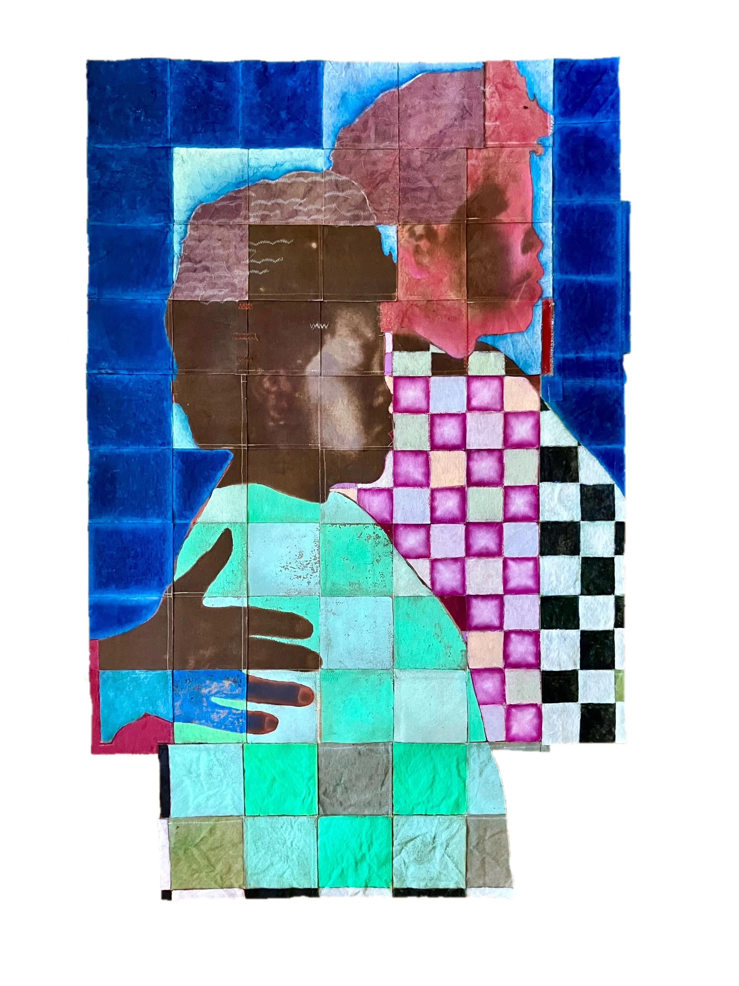 Ushered Forth by the Hand of God / Oil, Acrylic, Wax, and Thread on Sewn Canvas / 2024